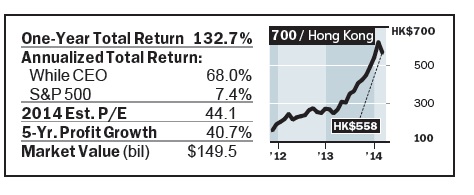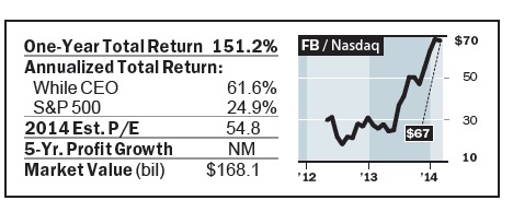 MARK ZUCKERBERG has created the dominant social-media company, with over a billion global users. He has shown the same intensity for making money — through a variety of mobile-ad formats — that he did in building the network. The company’s market value is approaching $200 billion following its bold $19 billion recent deal for instant-messaging company WhatsApp. Barron’s wrongly underestimated Zuckerberg and Facebook. Netflix’s Reed Hastings is a disrupter extraordinaire. More than 30 million Americans pay to watch streaming video of their favorite shows, movies, and Netflix’s original programming at a fraction of the cost of cable TV. Hastings, however, still needs to show that Netflix can mine significant profits from the huge subscriber base.