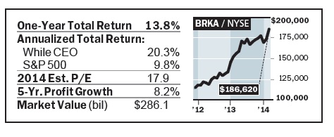 Some CEOs have generated phenomenal returns. Regeneron Pharmaceuticals,Netflix, Gilead Sciences, andPrecision Castparts are among the top 15 companies in the S&P 500 in shareholder returns in the past 10 years. Regeneron is up 20-fold. But nothing can compare with Berkshire Hathaway’s long-term record. Its share price is up 9,000-fold since Warren Buffett, the oldest CEO on our list at 83, took control in 1965.