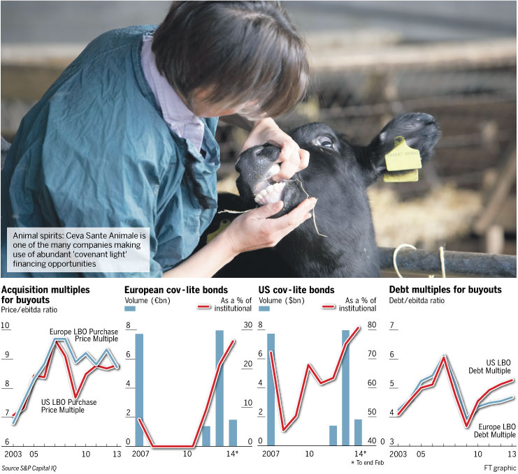 The trend is mirroring a buoyant US market, which private equity groups have predominantly used so far to fund their European leveraged buyouts. Dollar-denominated cov-lite loans to US and European companies reached a record $260bn in 2013, or 57 per cent of the total volume, and 69 per cent more than in 2007.