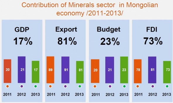 However, parliament can only do that after March 31. If we were a risk officer at commercial bank, we might look at what has happened to Mongolian sovereign risk, interest rates, emerging market risk premiums and perceptions of China in the last year, and decide that our terms have changed. For example, the yield on sovereign bonds which Mongolia issued internationally has risen to 7 per cent, from 4.8 per cent a year ago. (“Oyu Tolgoi is the largest financial undertaking in Mongolia’s history,” thebond’s prospectus said in 2012.)