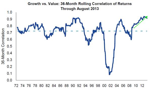 as style tilts (growth vs value for instance) have seen increasing correlations…