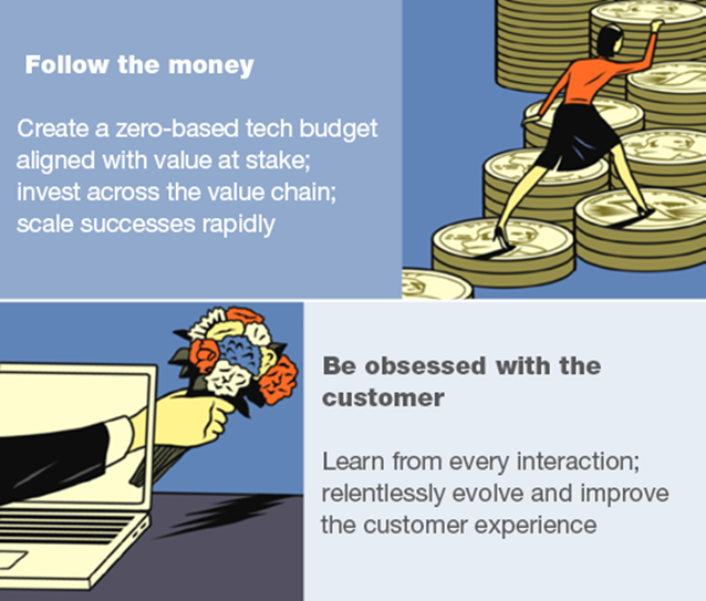 A healthy obsession with improving the customer experience is the foundation of any digital transformation. No enterprise is perfect, but leadership teams should aspire to fix every error or bad experience. Processes that enable companies to capture and learn from every customer interaction—positive or negative—help them to regularly test assumptions about how customers are using digital and constantly fine-tune the experience.