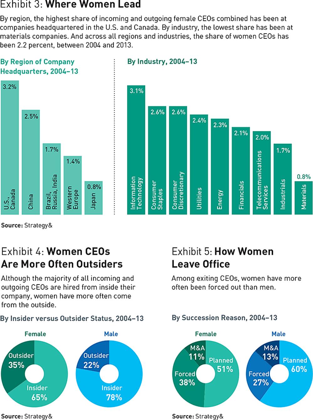 We’ve studied CEO successions and new CEOs at the world’s largest 2,500 public companies for the past 14 years. This year, for the first time, we’re performing an in-depth analysis of our data on the women who have either taken up or left the top office during those years. There aren’t too many—only 118 out of more than 6,000 incoming and outgoing CEOs—but we believe that looking at who’s coming and who’s going helps us understand what boards are looking for in CEOs.