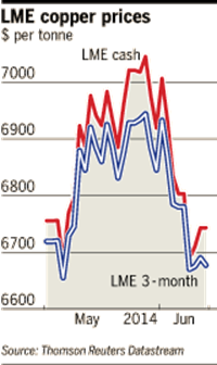 The ripples quickly spread far beyond Qingdao. The London Metal Exchange price of three-month copper, already down 5 per cent for the year, has dropped 4 per cent since the start of last week, to $6,650 a tonne on Thursday. New financing deals for copper and other metals in China have dried up.