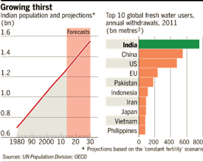 As India’s population rises inexorably towards the 1.7bn mark it is expected to reach in the second half of this century – the country will soon overtake China as the world’s most populous – decades of abuse of rivers and groundwater are presenting successive governments with a severe water challenge. Among the priorities set by Narendra Modi, the new prime minister, is to clean the polluted Ganges River and improve India’s inadequate water and sewerage systems.