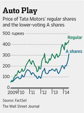 The spread could continue to narrow, given that the benefits of owning the two are so similar. Yet even if it doesn’t, the Class A shares should at least rise in step with the regular stock. The company’s Jaguar Land Rover division continues to grow sales, especially in China. And at home, Tata’s truck business stands to benefit hugely should Mr. Modi push hard on infrastructure investment. Tata has more than half of India’s truck market.